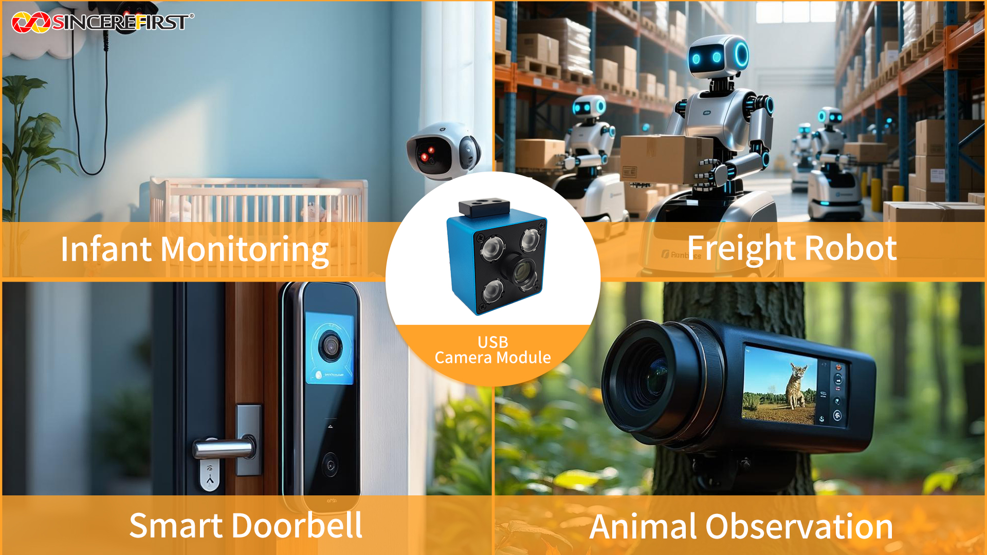 This is a 1080P 60FPS external trigger monochrome/color CMOS sensor USB camera module from SincereFirst, a compact optical solution specifically designed for industrial inspection and machine vision applications—leverageing the brand’s over 30 years of expertise in optical devices and camera modules. It offers optional monochrome or color CMOS image sensors, equipped with 2MP resolution (1920×1080) and supporting 60FPS high-frame-rate output. Combined with a 1/2.6-inch sensor and 3μm×3μm large pixel size, it achieves low-noise and high dynamic range imaging. Core features include global shutter and global exposure technologies, which effectively reduce rolling shutter artifacts during dynamic shooting and accurately capture fast-moving objects without blur. The external trigger function supports synchronous control of shooting timing via external signals, ensuring timing consistency for multi-device collaborative operations. Output formats are compatible with MJPG/YUY2, meeting the encoding requirements of different software platforms. Physically, it adopts a USB Type-C interface, supports USB3.0 high-speed transmission (5Gbps), and is compliant with the UVC protocol, enabling plug-and-play compatibility with mainstream operating systems such as Windows, Linux, and macOS. The module integrates a housing with 4 built-in high-brightness LED beads and features manual focus with a focus range of 1cm~Infinity, adapting to flexible shooting scenarios from macro to long-distance. Manufactured using SMT and AA (Active Alignment) processes—backed by SincereFirst’s Class 10/100 COB dust-free workshops—the product has passed international certifications including FCC, CE, Reach, and RoHS, ensuring industrial-grade quality and global compliance—a testament to quality recognized by Fortune Top 500 partners.