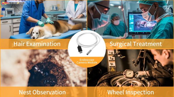 The 1/9″ 1Mega USB Endoscope Camera Module is a compact and versatile imaging device designed for medical and industrial applications. It features a resolution of 1280 x 720 pixels (1MP), a frame rate of up to 30 fps, a 1/9″ CMOS sensor, a UVC-compliant USB 2.0 output interface, plug-and-play functionality, LEDs for illumination in low-light conditions, fixed focus, an effective focal length (EFL) of 1.56mm, and special features such as high dynamic range (HDR), automatic white balance (AWB), automatic exposure control (AEC), and automatic gain control (AGC). This module is used in medical endoscopy, industrial inspection, automotive inspection, etc.