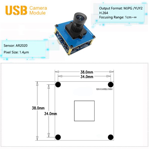 In terms of output formats, the module is compatible with three mainstream formats: MJPC, YUY2, and H.264, meeting the data reception needs of different devices. The focus system adopts a manual adjustment design with a focus range from 1cm to infinity, enabling precise focusing for both macro shooting and long-distance viewing. The module features a compact overall size of just 38mm x 38mm, produced with advanced AA process manufacturing technology for easy integration into various devices. For interfaces, it features both Type-C and HDMI dual interfaces with USB3.0 standard transmission rate, ensuring efficient and stable data transmission. It also supports UVC protocol, seamlessly compatible with mainstream operating systems including Raspberry Pi, Windows, Linux, and MacOS, and provides SDK support for user secondary development. In production process, the module adopts SMT (ROHS) environmental protection process and AA (Active Alignment) process, ensuring compliance with international environmental standards while maintaining excellent reliability.